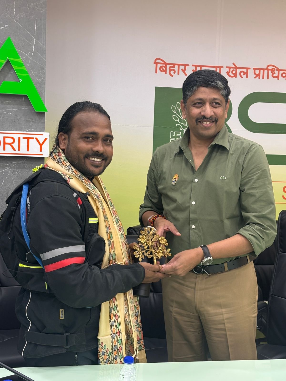 अंतर्राष्ट्रीय पैराशूटर संजीव कुमार का बिहार राज्य खेल प्राधिकरण में हुआ अभिनंदन