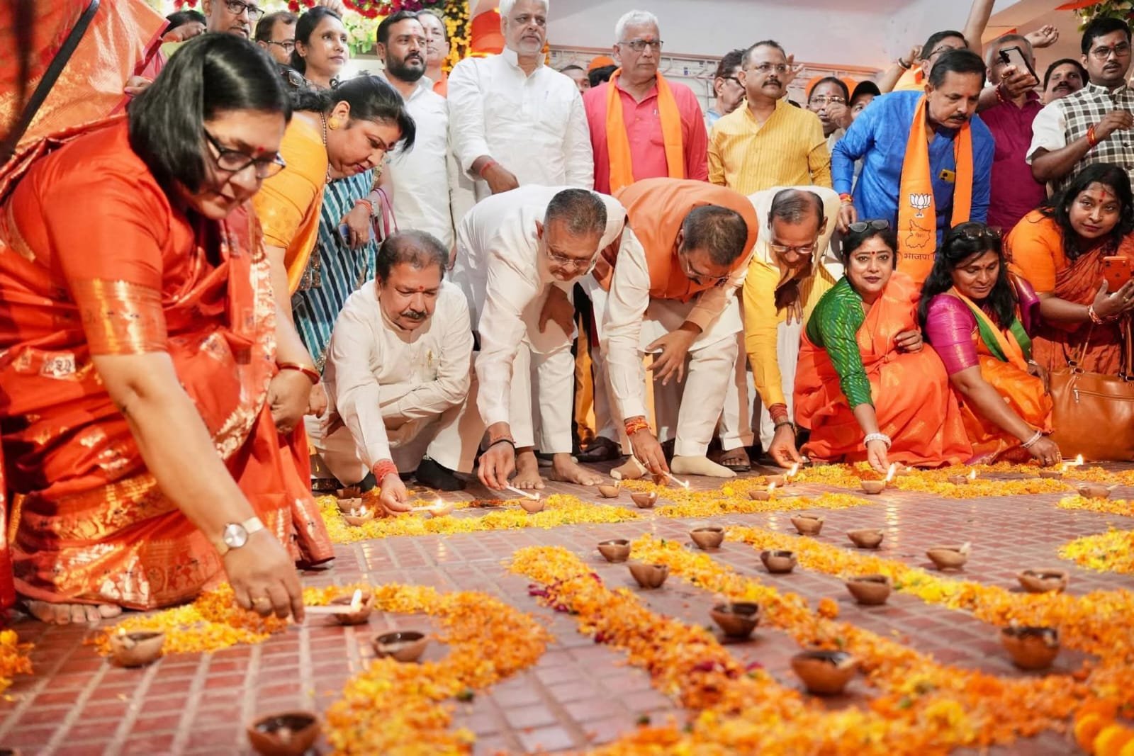 दीपों की रोशनी से नहाया प्रदेश कार्यालय परिसर भाजपा स्थापना दिवस पर जश्न का माहौल