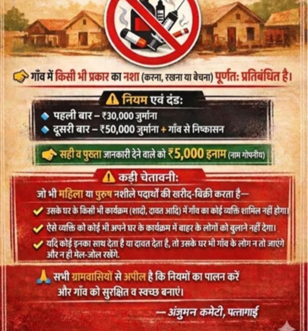 नशे के खिलाफ ‘पातागाईं’ का शंखनाद: पकड़े गए तो 50 हजार जुर्माना और खबर देने वाले को मिलेगा इनाम