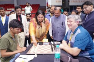पटना, 27 मार्च 2026: बिहार ओपन फिडे रेटिंग शतरंज प्रतियोगिता के छठे चक्र के आरंभ से पूर्व राज्य की खेल मंत्री सुश्री श्रेयसी सिंह ने प्रतियोगिता स्थल पर पहुंच कर खिलाड़ियों का अपने संबोधन से उत्साहवर्धन किया। उन्होंने कहा कि हमारे देश ने जिस तरह शतरंज में अपना नाम विश्व शतरंज में स्थापित किया है, अब ऐसा ही स्वरूप और वही ऊर्जा बिहार के खिलाड़ियों में देखनें को मिल रही है ।