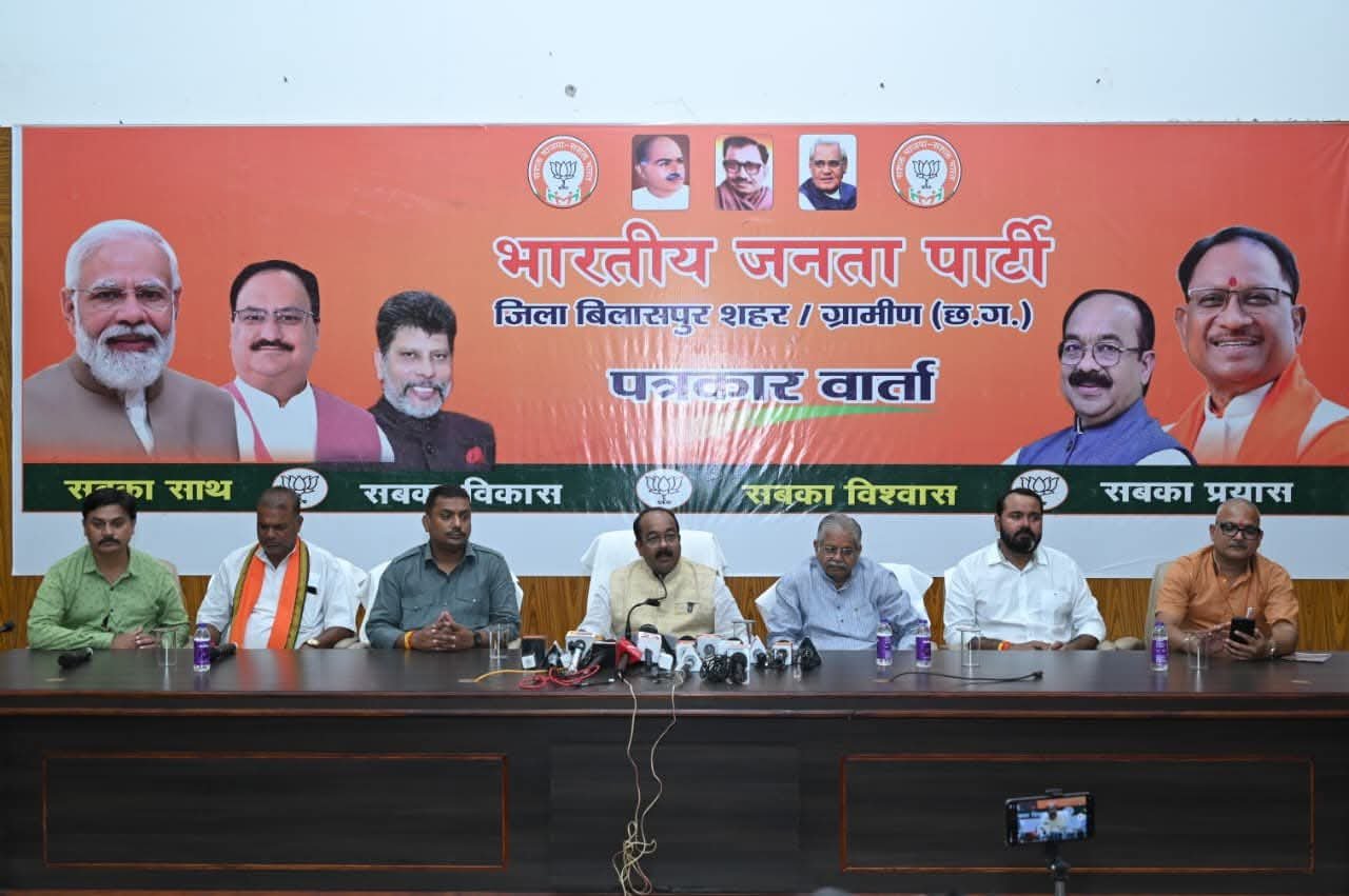 भाजपा जिला बिलासपुर की पत्रकार वार्ता में उपमुख्यमंत्री अरुण साव ने की शिरकत