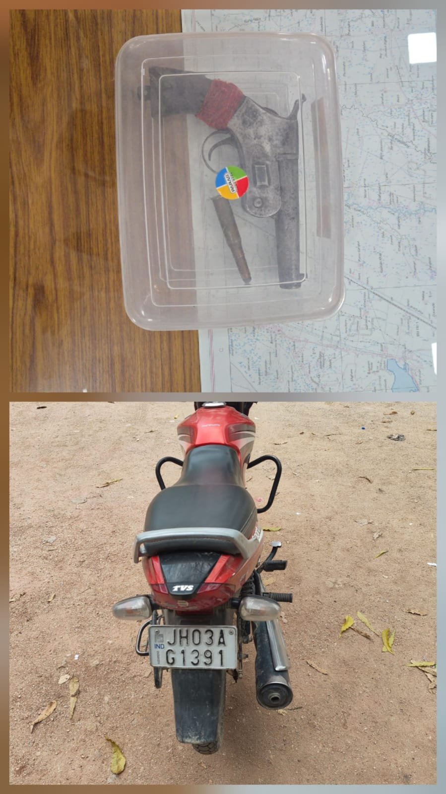 संदेह के आधार पर सशस्त्र बल की सहायता से घेराबंदी कर मोटरसाइकिल सवार को पकड़ लिया गया। विधिवत तलाशी लेने पर उसके कमर के पिछले हिस्से में खोंसकर रखा गया एक देशी कट्टा एवं एक जिंदा गोली बरामद हुई। साथ ही टीभीएस लाल रंग की मोटरसाइकिल (रजिस्ट्रेशन संख्या जे एच 03एजी-1391) को भी जब्त कर लिया गया।इस संबंध में हुसैनाबाद थाना कांड संख्या 64/26, दिनांक 22.03.2026, धारा 25 (1-बी)ए/26 आर्म्स एक्ट के तहत मामला दर्ज किया गया है। गिरफ्तार विधि-विरुद्ध बालक को निरुद्ध कर बाल सुधार गृह भेजे जाने की कार्रवाई की जा रही है।